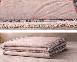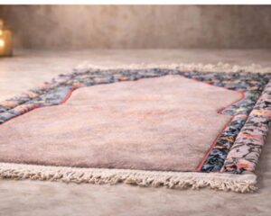 This premium set includes a padded prayer rug with refined patterns, along with a matching Qur’an and sebha, making it perfect for peaceful daily prayers.