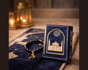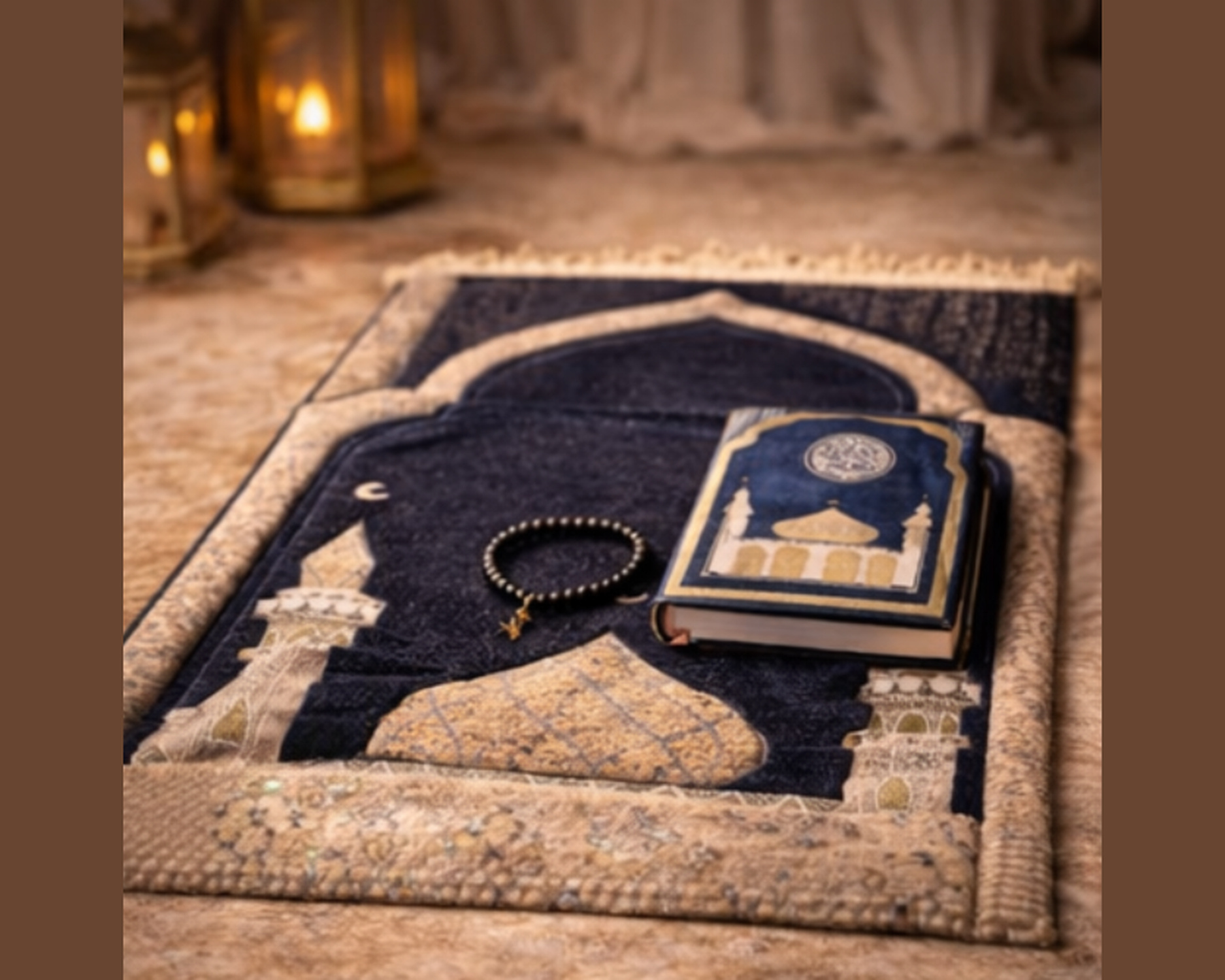 A complete set for your daily prayers — one matching theme from start to finish. This bundle includes a padded prayer rug, plus a Qur’an and sebha designed to match the rug perfectly.